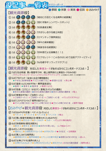 乗客から集めた情報をもとに、観光資源のネタ(観光資源カード)を手に入れ